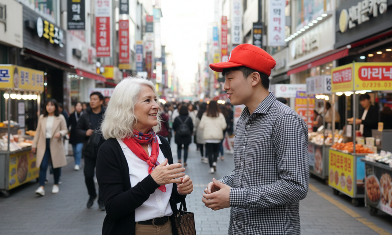 I shared my language and culture with travelers, helping them speak their first Korean words.